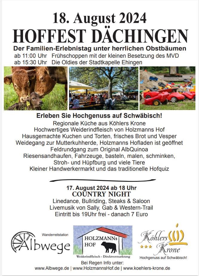 Dieses Jahr findet unser Wanderrreitfest und Hoffest wieder statt!