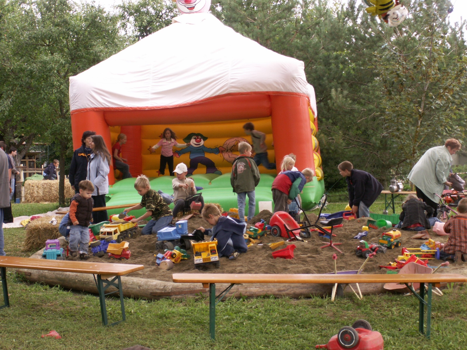 - Aktivitäten wie Kinderschminken, eine Stroh- und Hüpfburg, Malen, Basteln, das Spruibad, Riesensandhaufen mit vielen Kinderfahrzeugen und Sandspielzeug lassen den Tag verfliegen. Bei gutem Wetter haben wir vor, eine Riesenwasserrutsche herzurichten.