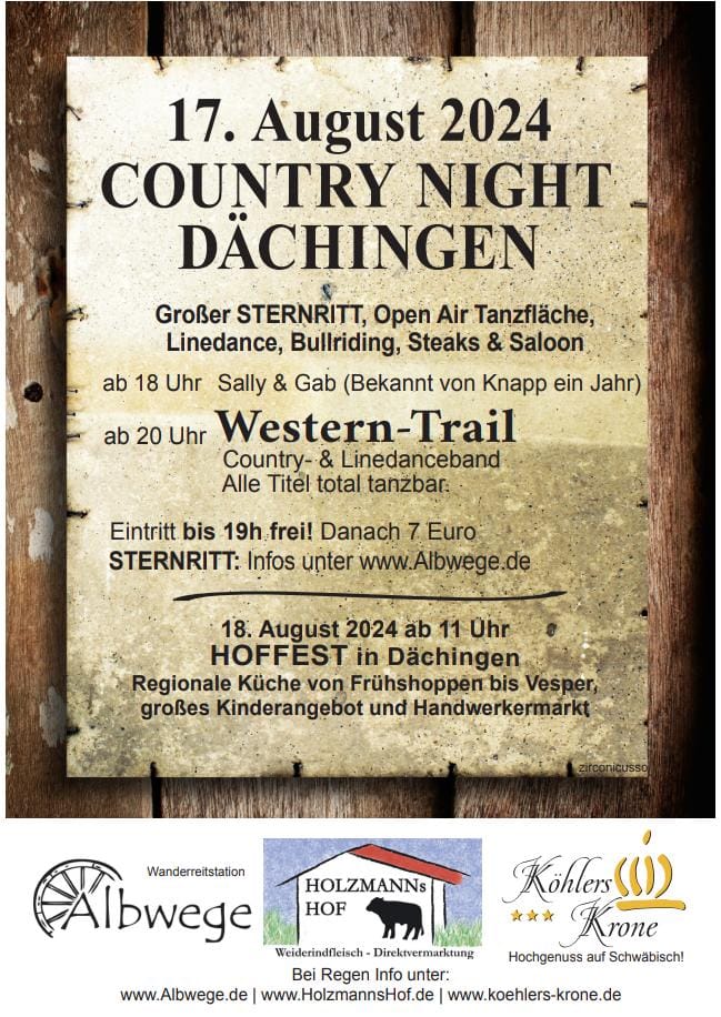Ab 20 Uhr spielt die Country- & Linedanceband "Western Trail".